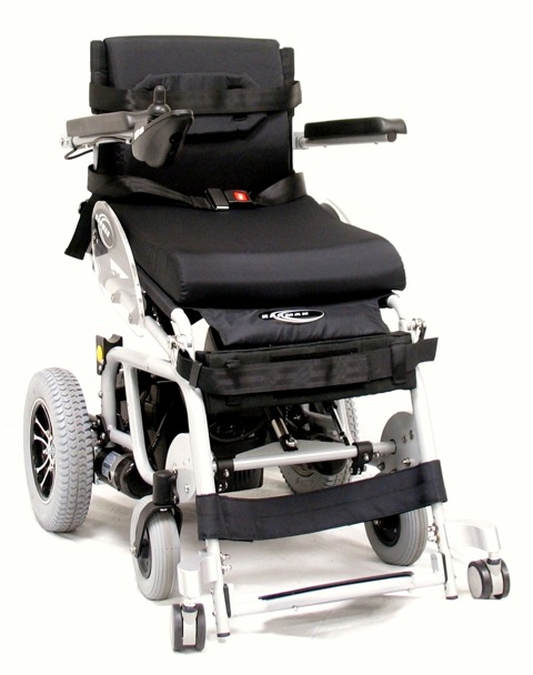 This rear-wheel drive power chair enables the end-user the ability to drive the chair while in a standing position.